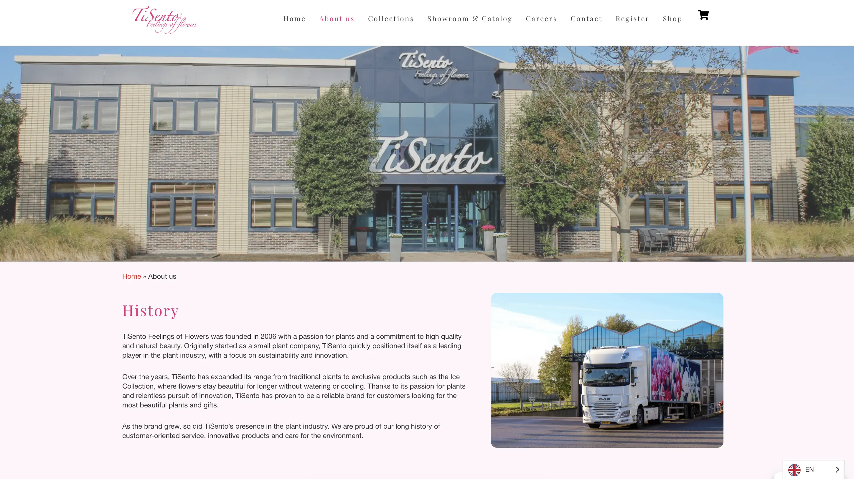 TiSento is een internationaal opererende kwekerij die naast eigen producten ook samenwerkt met andere bedrijven en hun bloemen en planten verkoopt. De opdracht voor dit project was het ontwerpen en bouwen van een volledig nieuwe website met een geïntegreerde webshop, gericht op zakelijke klanten. TiSento verwerkte alle bestellingen nog telefonisch en op papier, wat het proces omslachtig maakte voor zowel het bedrijf als hun klanten. Dit project is uitgevoerd als samenwerking tussen mijn werkgever en TiSento als externe opdrachtgever. Het werd in teamverband opgepakt, waarbij ik verantwoordelijk was voor het design en de bouw van de website.