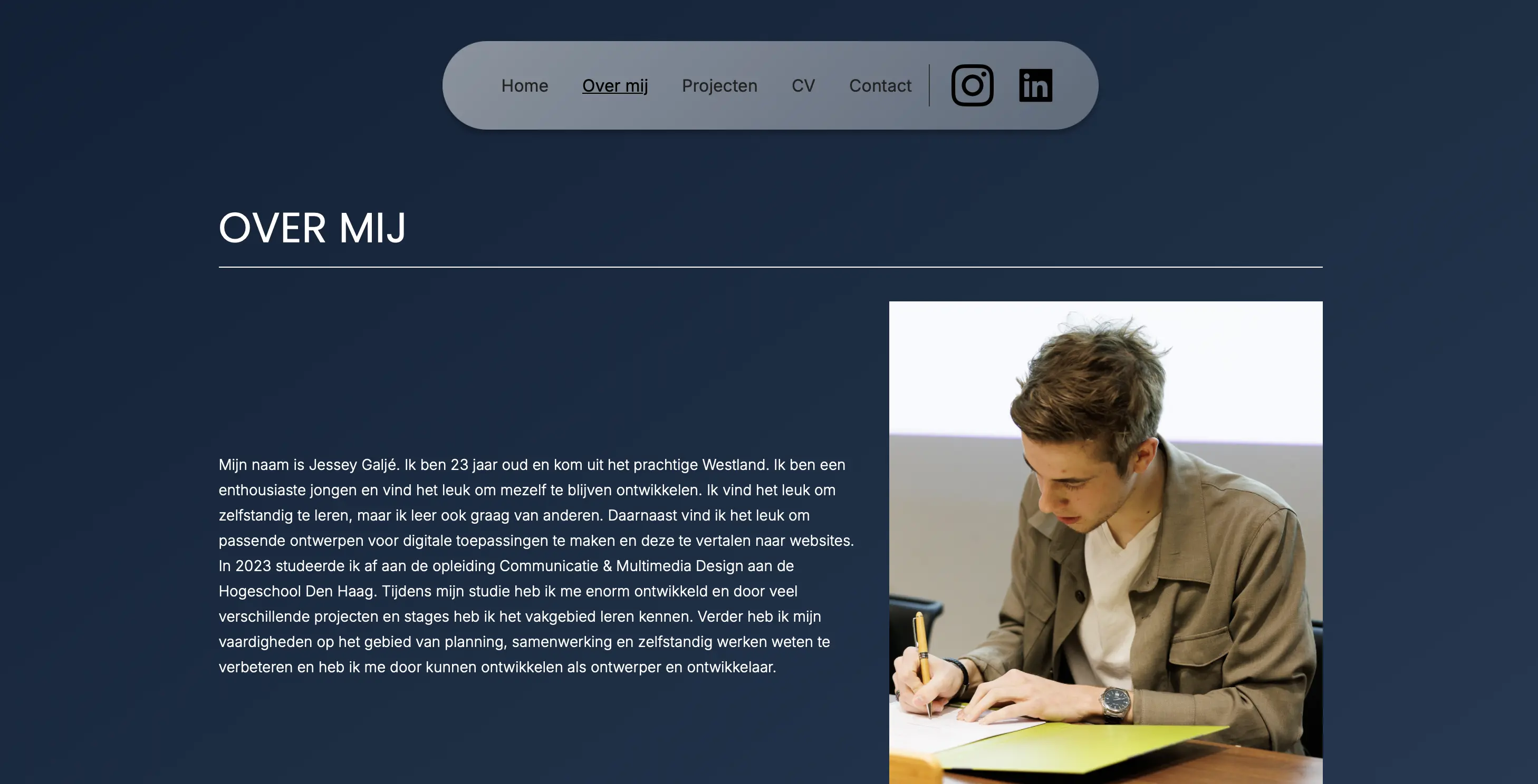 Dit project is een volledig redesign van mijn eigen portfolio website. Mijn oude portfolio was verouderd, sloot niet meer aan bij mijn huidige stijl en weerspiegelde niet de vaardigheden die ik inmiddels heb opgebouwd. Dat was voor mij het moment om opnieuw te beginnen. Het hele project heb ik zelfstandig uitgevoerd, van de eerste wireframes tot de uiteindelijke bouw in Webflow.